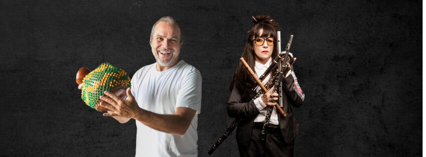 Reconhecidos por suas trajetórias na música brasileira, Ari Colares e Ariane Rodrigues constroem juntos uma experiência sonora que atravessa tradição e criação contemporânea. Enquanto Ari desenvolve uma pesquisa profunda sobre ritmos tradicionais e a potência da percussão como linguagem artística, Ariane amplia esse universo com sua atuação na flauta, trazendo um repertório marcado por influências do jazz, da música brasileira e das culturas populares.
